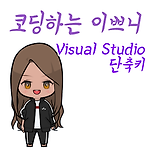 · Ctrl + F : 찾기 · Ctrl + Shift + F : 파일에서 찾기 · Ctrl + Shift + A : (소스파일) 새로 만들기 · Ctrl + S : 저장 · Ctrl + K + F : 자동정렬 (버전마다 달라요) · Ctrl + D : 커서가 위치한 곳의 한줄 복사 · Ctrl + L : 커서가 위치한 곳의 한줄 삭제 · Ctrl + K + C : 주석 · Ctrl + K + U : 주석해제 · Alt + ↑ , ↓ : 커서가 위치한 줄 전체 위로(아래로)이동